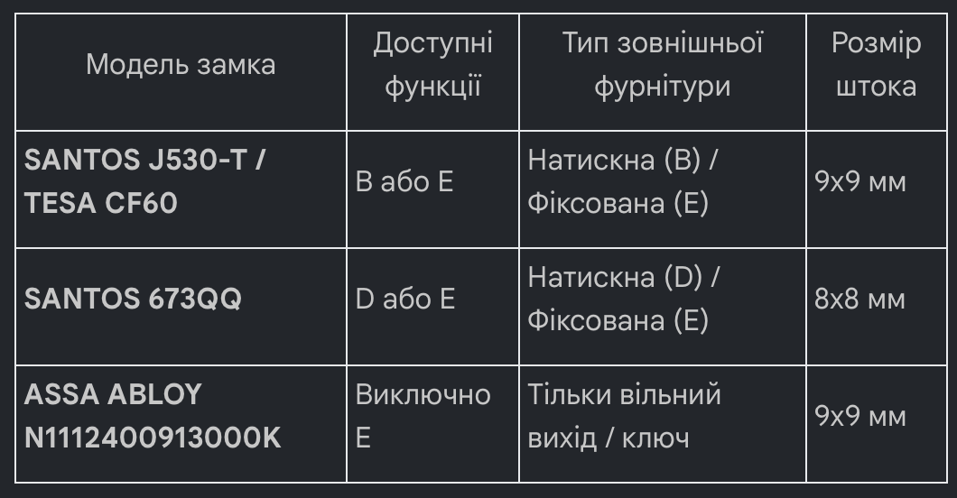 Важлива примітка: Погодження типу ручки (натискна чи фіксована) та перевірка розміру штока (8х8 мм чи 9х9 мм) є обов'язковими умовами для коректної реалізації панік-функції.