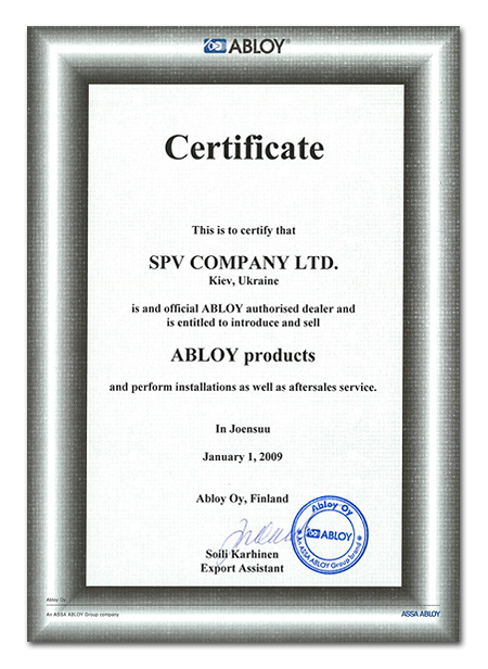 «СПВ Компани Лтд» начала сотрудничество с финским концерном ABLOY Oy ( аблой ой ) в 1999 году. В 2000 году «СПВ Компани Лтд» стала дилером ABLOY Oy ( аблой ой ).